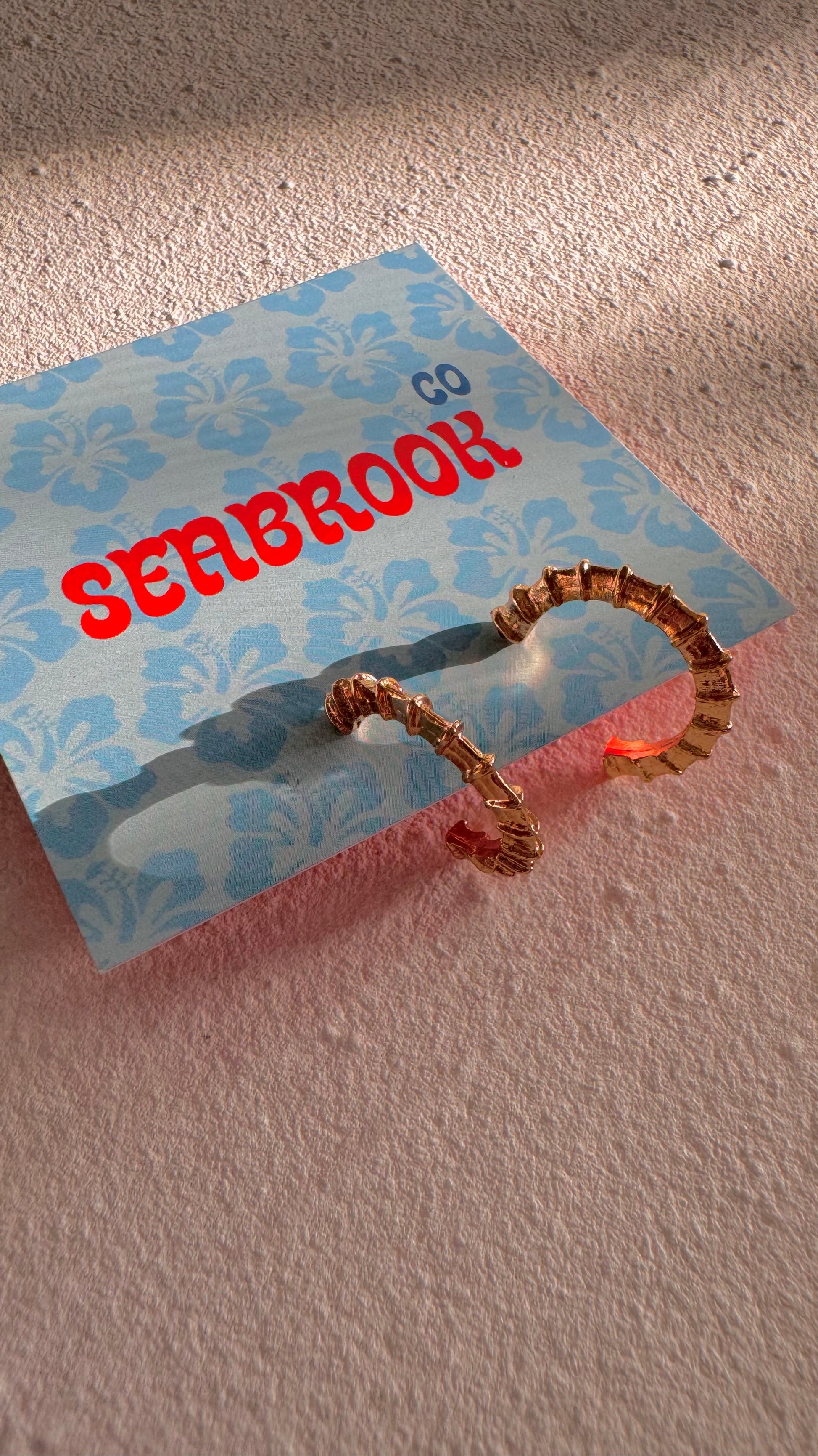These Bamboo Style Hoop Earrings add a touch of tropical and beachy vibes to your everyday look. These earrings are lightweight and comfortable, perfect for you to wear all day. Complete your summer look with these golden bamboo style earrings.