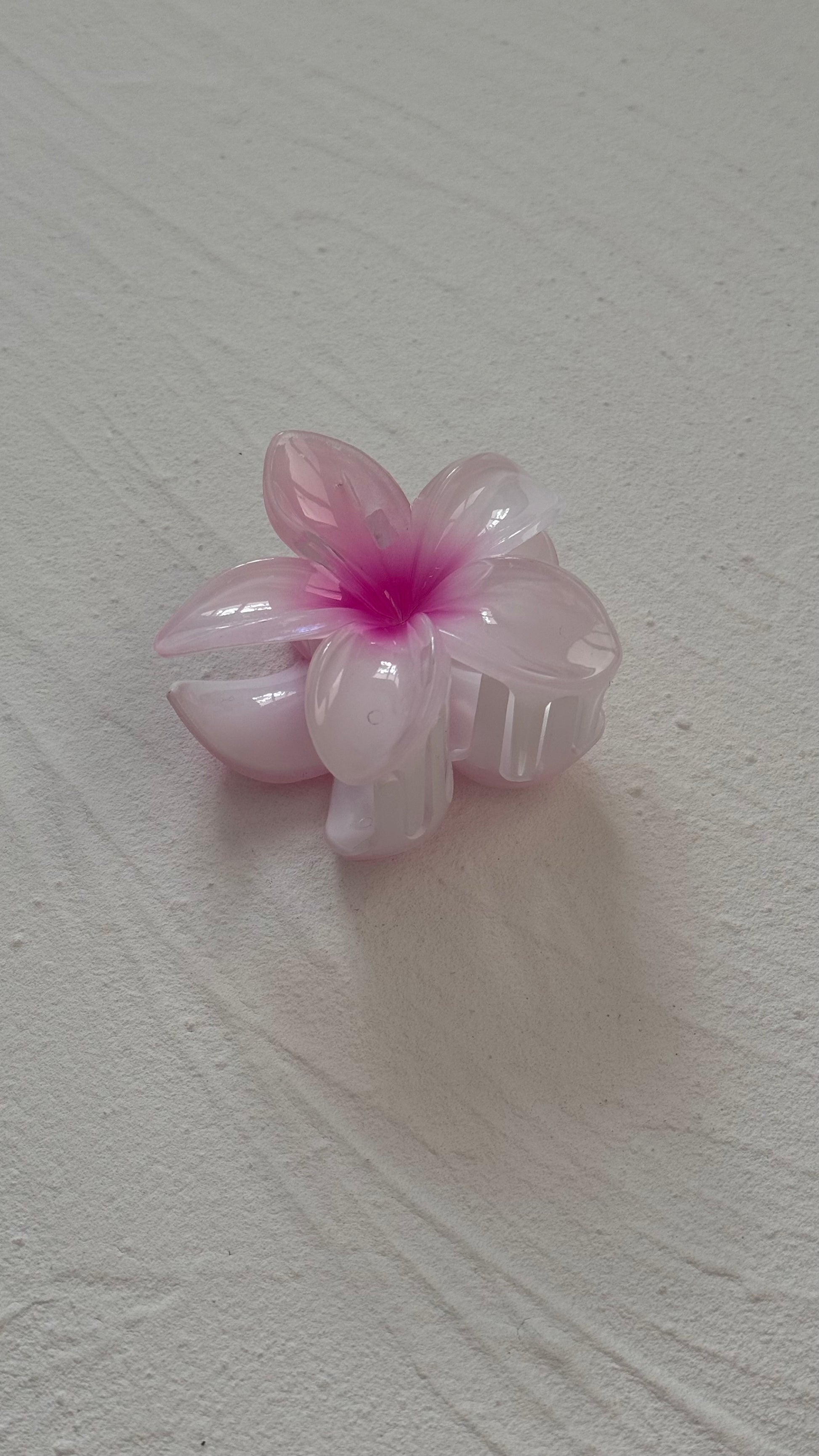 Embrace the tropical girl vibes with our Frangipani Clip! Featuring a beautiful mauve and white design, this clip will elevate any summer style. Add a touch of elegance to your look while enjoying the relaxed and carefree feeling of the season. Shine and stand out with this perfect accessory.