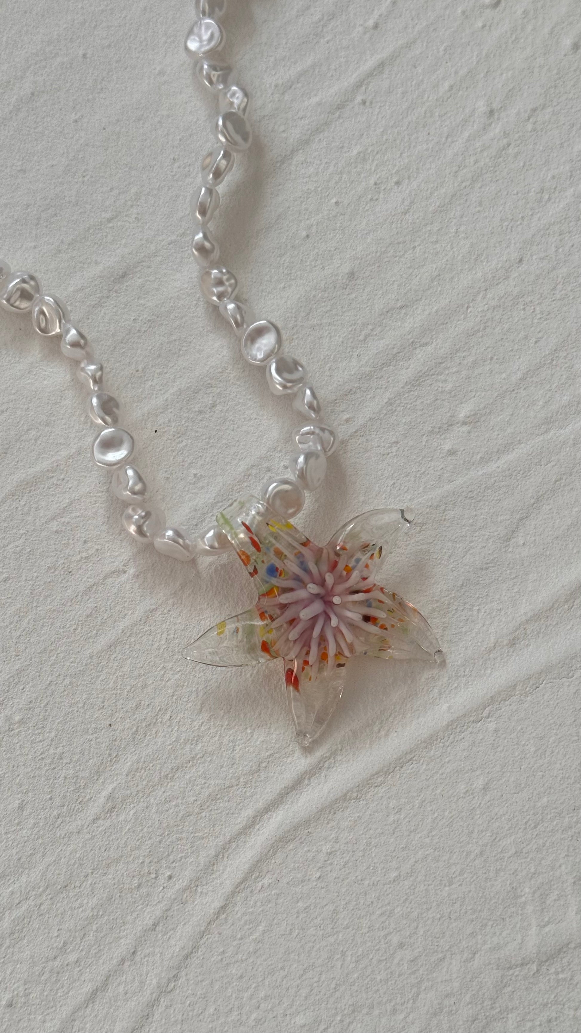 Embrace the tropical vibes with our stunning Glass Starfish Necklace. This necklace features a beautiful starfish design that will transport you to endless summer days. Make a statement and add a touch of elegance to any outfit with this unique accessory.