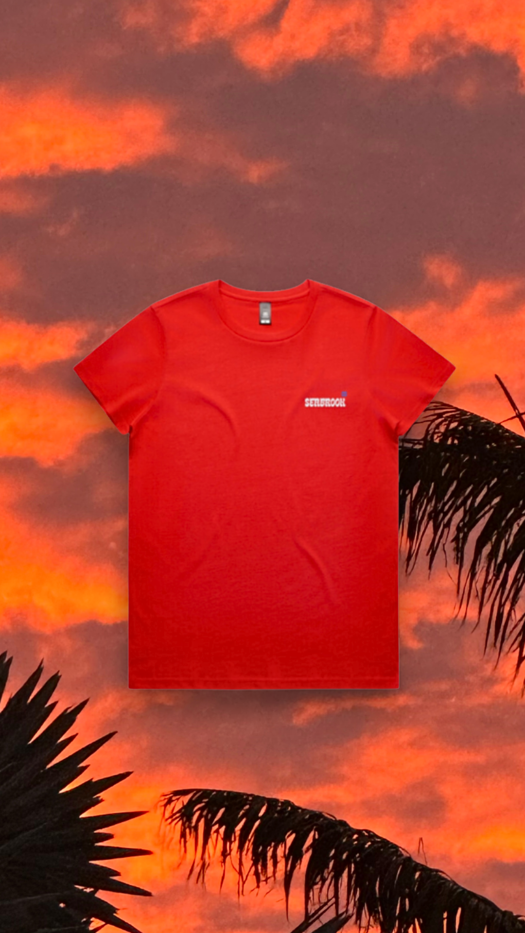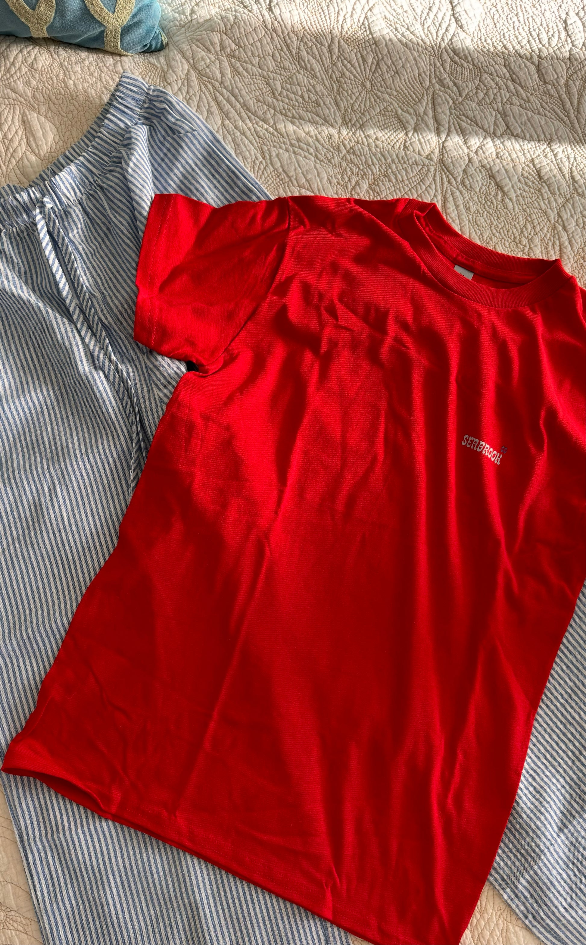 This versatile red Seabrook tee is a must-have for any wardrobe. Its classic design pairs well with a variety of outfits, making it a practical and stylish choice for everyday wear. With its comfortable fit, this tee is sure to become a staple in your wardrobe.